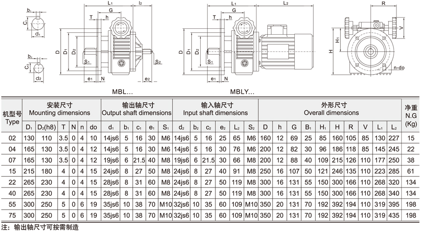 MB系列無級變速機臥式與立式安裝尺寸